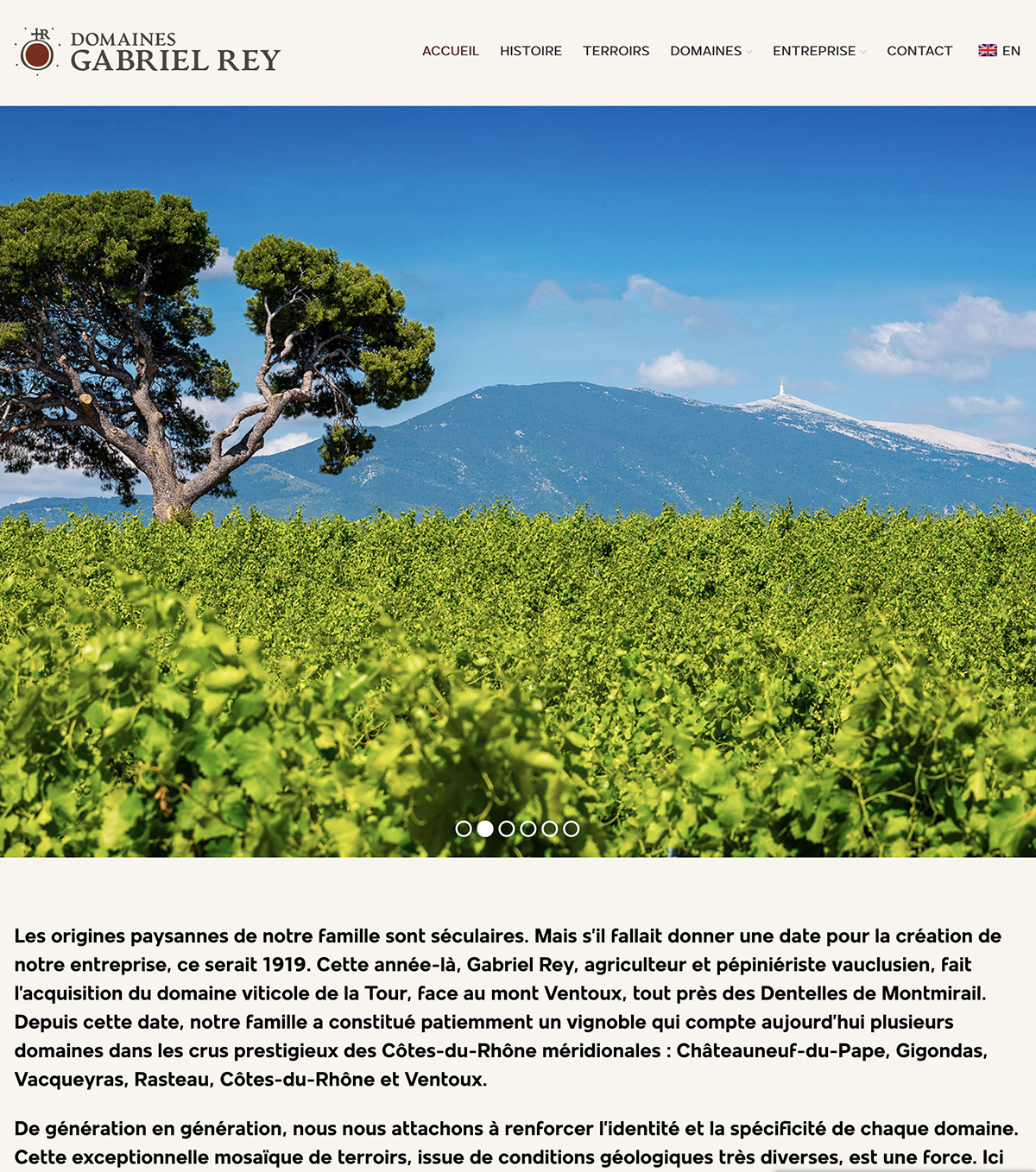 Cette année-là, Gabriel Rey, agriculteur et pépiniériste vauclusien, fait l’acquisition du domaine viticole de la Tour, face au mont Ventoux, tout près des Dentelles de Montmirail.